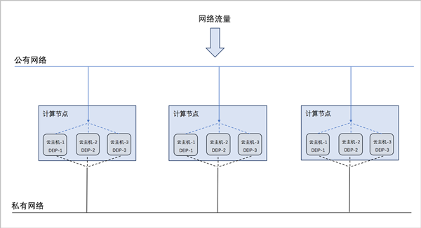以公网弹性IP为例,扁平网络下弹性IP的应用场景。