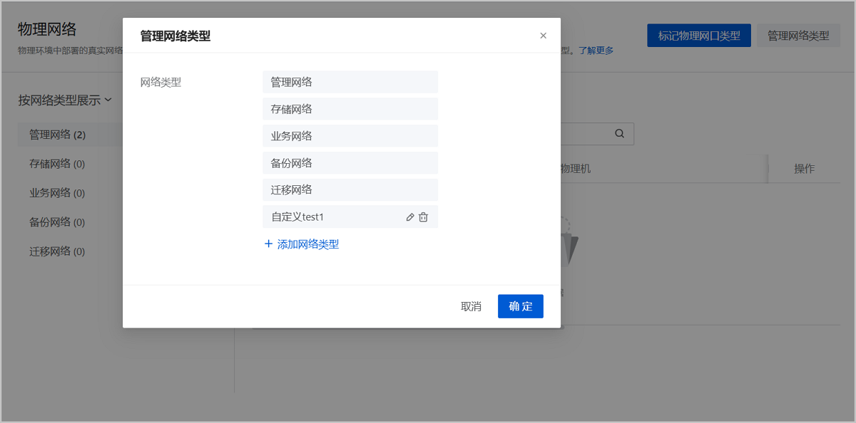 ZStack Cloud 5.3.0新增支持自定义物理网络类型,允许用户为不同物理网络添加、修改和删除自定义标签。通过这种方式,用户可以更加灵活地对平台物理网络进行分类和标识,从而实现对云平台网络的精细化管理。