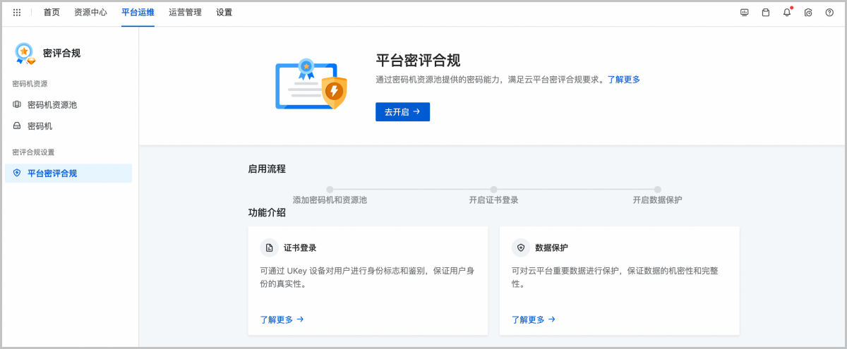 ZStack Cloud推出全新密评合规功能,满足企业在密评场景下的云平台合规要求。密评合规以单独的功能模块形式提供给用户。