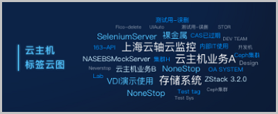 通过对所选虚拟化、区域中KVM云主机标签以及KVM云主机绑定标签的数量进行统计,绘制不同颜色、不同大小的标签云图。云主机绑该标签的数量越多,云主机标签云图中该标签的名字显示越大、颜色越亮,可直观告知用户哪些云主机标签更受青睐。