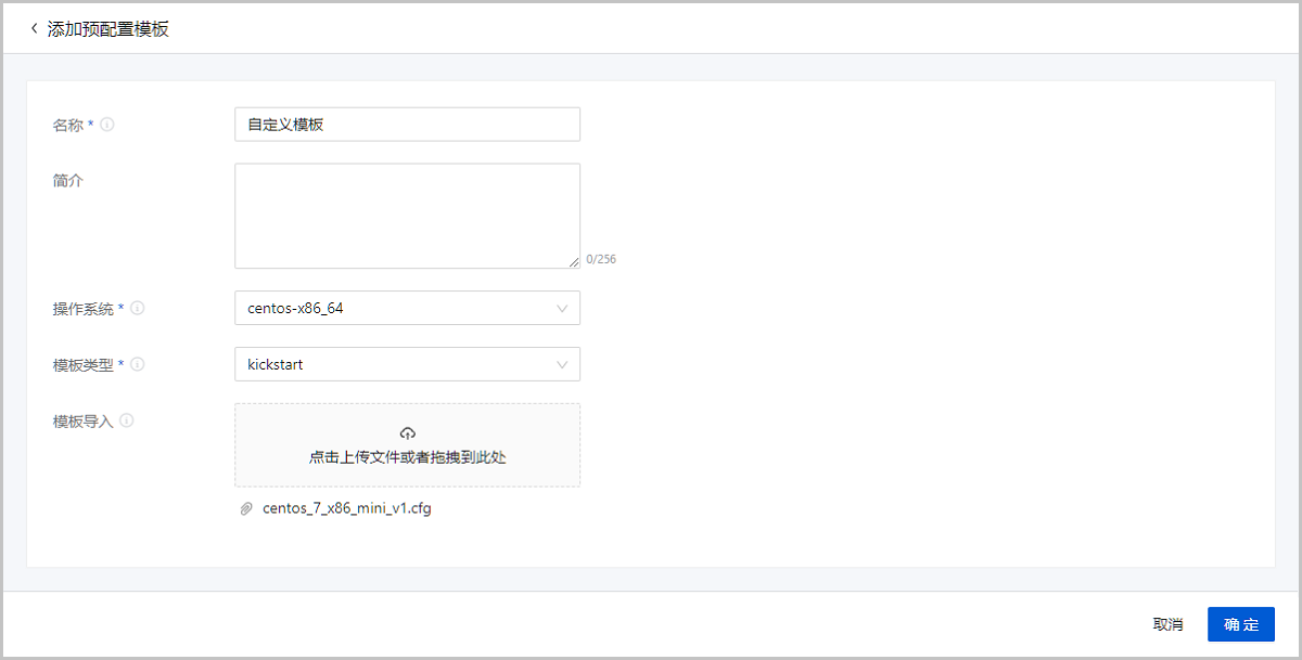 自定义模板:支持上传自定义模板文件,采用UTF8编码格式,除了包含基础的系统变量,可按需自定义变量,适用于复杂的无人值守部署场景。