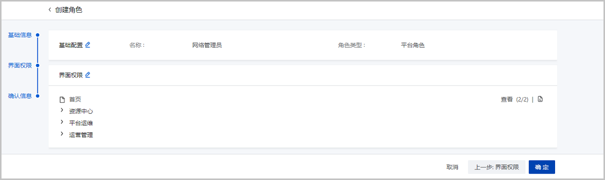 在ZStack Cloud主菜单,点击,进入角色界面,点击创建角色,弹出创建角色界面。