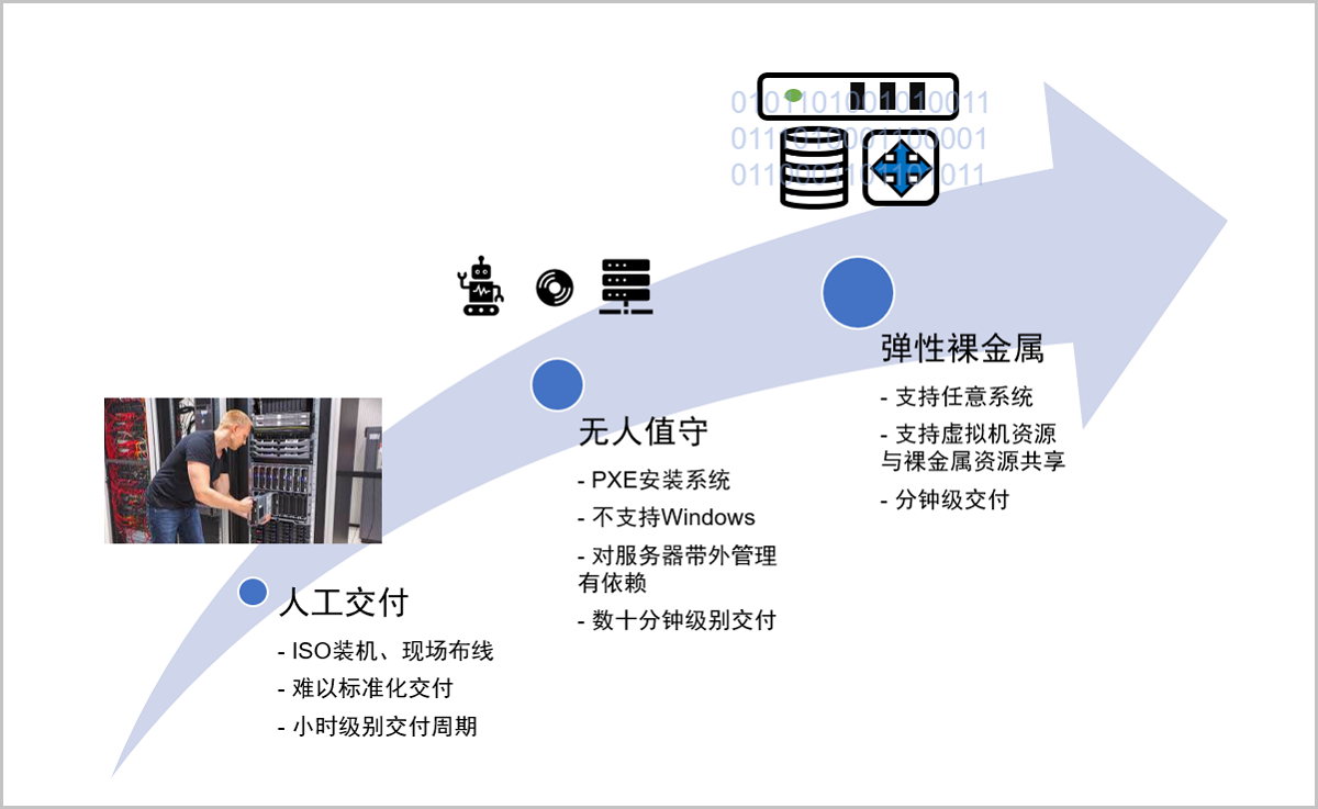 弹性裸金属管理:不仅可为应用提供专属物理服务器,保障核心应用的高性能和稳定性,而且结合云平台中资源的弹性优势,可实现灵活申请,按需使用。弹性裸金属管理融合了物理机和云主机各自的优势,业务应用不仅可以使用物理机超强超稳的计算能力,而且可以使用云平台内主存储、三层网络等资源。避免虚拟化开销的同时,突破云资源与物理资源的边界,提高云资源的可用性,特别适合部署传统的非虚拟化场景应用。