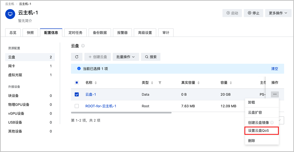 至此,根云盘设置QoS已介绍完毕。更多关于根云盘的说明请参考《用户手册》的云主机相关章节。