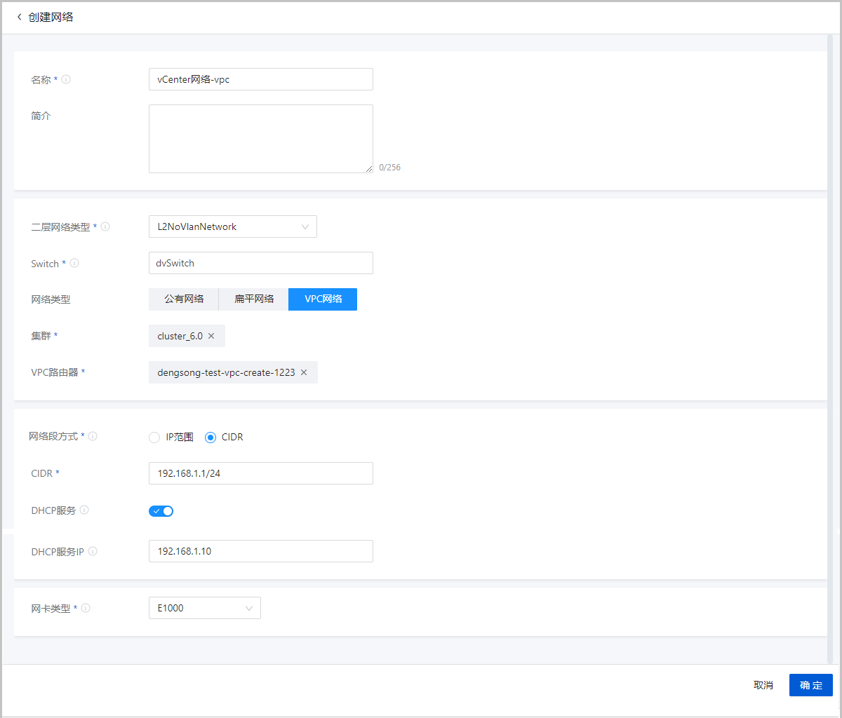 | 删除vCenter网络 | 删除vCenter网络资源,会删除本地记录,远端vCenter上的真实网络资源不受影响。(删除vCenter网络时,会将相关vCenter云主机相应网卡卸载。) |