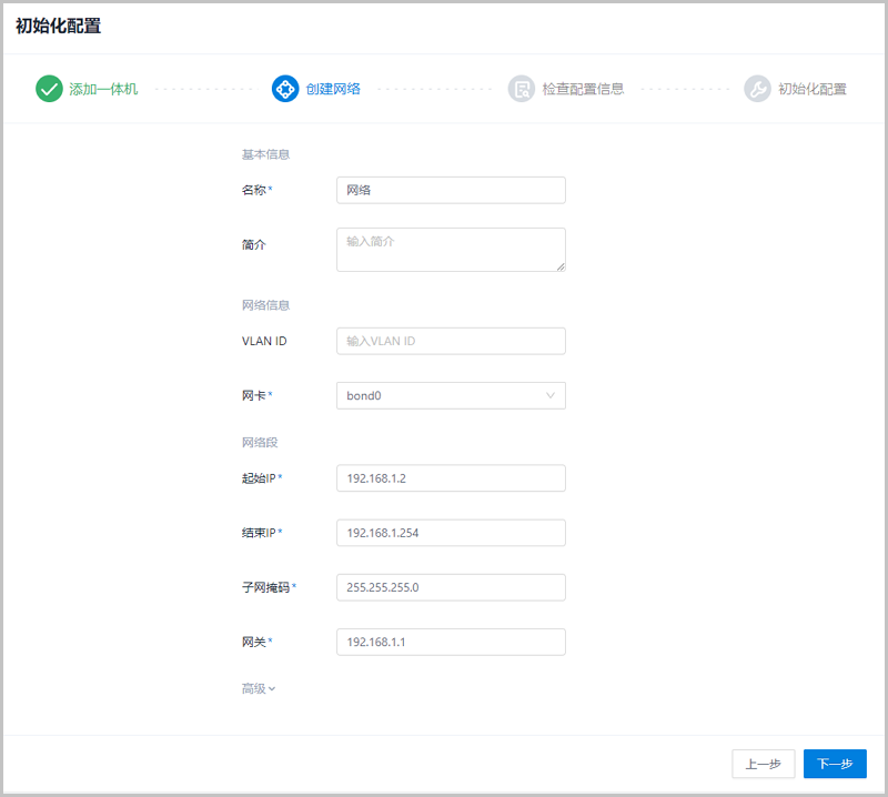 3. 点击下一步,进入创建网络设置。