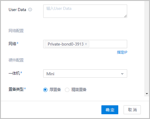 • 一体机:选择指定的一体机来启动云主机