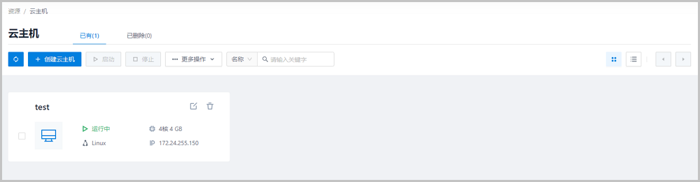 云主机界面,支持以下操作: