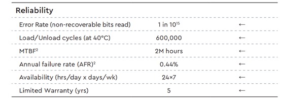 不管是ZStack Mini还是2U4节点的超融合一体机产品,内部都有多种IT硬件,每种乃至每个硬件都有故障率。以ZStack Mini中大量使用的西部数据Ultrastar DC HC310(4TB)硬盘为例,其年故障率为0.44%,系统内所使用的硬件越多,其故障的风险自然越大。西部数据官网公布的Ultrastar DC HC310系列硬盘的可用性,上图中Annual failurerate(AFR)即为硬盘的年故障率(0.44%);上图中的MTBF则表示平均故障间隔时间,为2百万小时